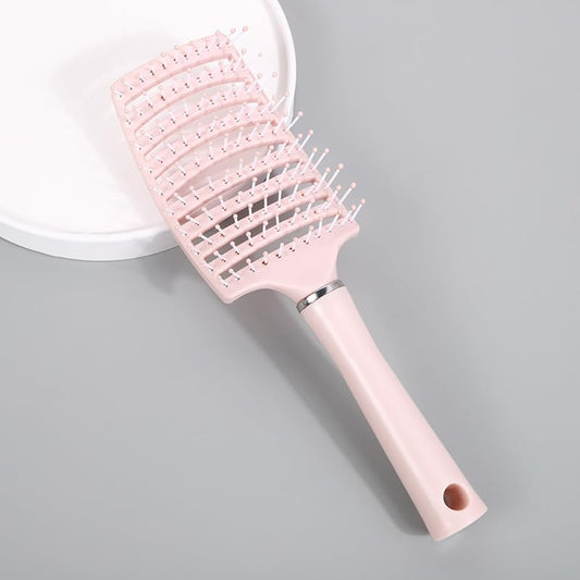 Detangler Paddle Hair Brush CURVED & VENTED For All Hair Types (Pink)