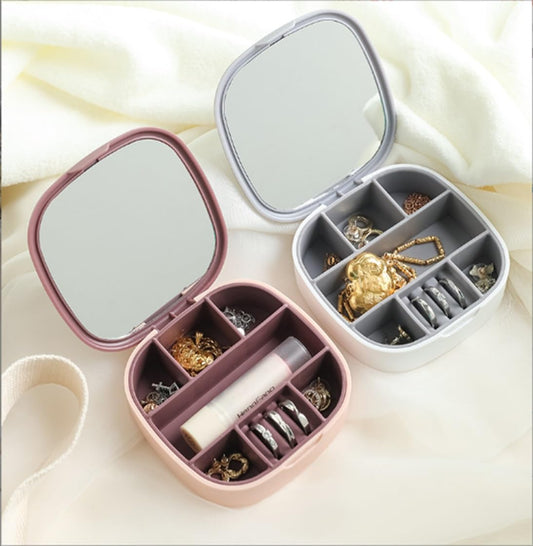 Travel Jewellery Box, Small Jewellery Organiser, Mini Jewellery Storage Case with Mirror for Rings Earrings Necklace, Washable Portable Jewellery Box Gift for Women Girls (Grey)