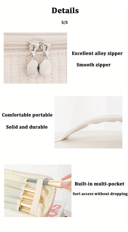 Toiletry Bag for Men and Women for Travel - Cosmetics Organizer Kit - Makeup Bag Portable PU Leather Waterproof Makeup Case Multifunctional Makeup Bag with Brush Compartment (Beige)