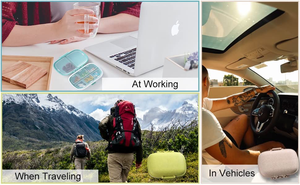 - PORTABLE SIZE & FOR TRAVELING: Size of this portable pill box is 4.33x3.54x1.2 inch, can be easily put in your purse, suitcase, backpack, handbag, or your coat pocket, without taking up space, very convenient for a trip!