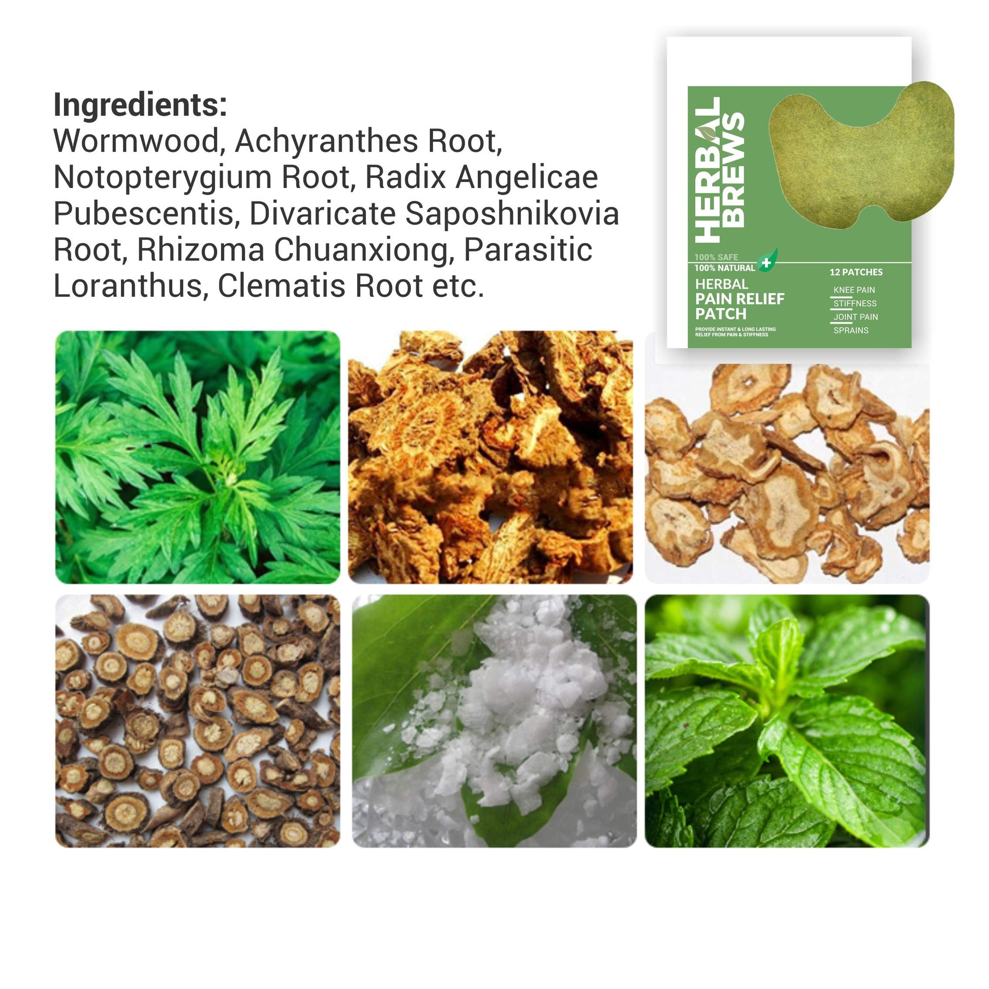 Details: Herbal Brews - Pain Relief Patches - 12 Knee & Joint Pain Patches (Specially Designed for Knees) | 100% Safe & Natural Knee Pain Relief Products | INSTANT RELIEF | NO SIDE EFFECTS