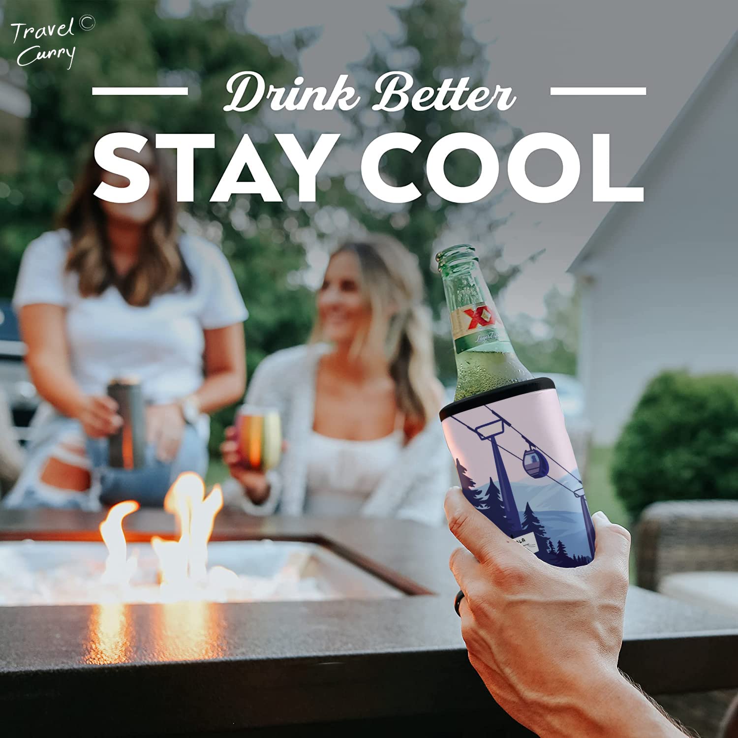 Details: Travel Curry - Can Covers - Reusable NEOPRENE Insulator Sleeve Coozies for Bottle Pints 330 ml / Cola or Energy Drink Cans upto 500 ml - Himalayas Inspired Premium Design - Set of 5