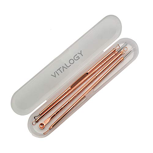 Details: Vitalogy - Blackhead Remover Tool Kit - 4 in 1 Acne and Pimple Removal Tool - Nose & Face Blackheads Remover & White Heads Removal, Blackhead Tweezers, Acne Removal Tool - ROSE GOLD with Travel Case